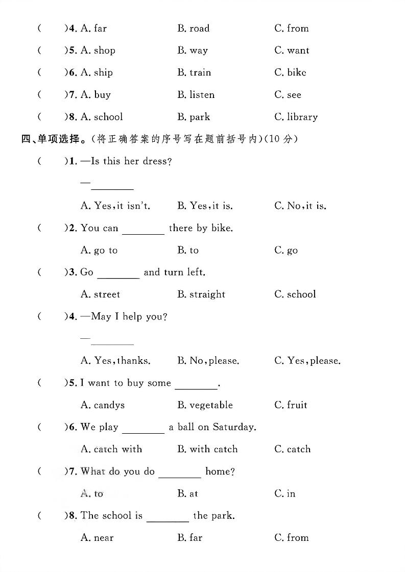 四年级上英语期末检测卷《冀教版》-独家科技资源网