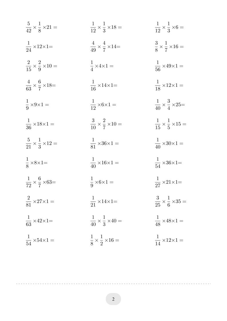 六年级下数学分数与整数连乘专项练习-独家科技资源网