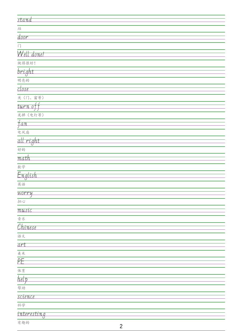 四年级下英语手写体字帖《闽教版》-独家科技资源网