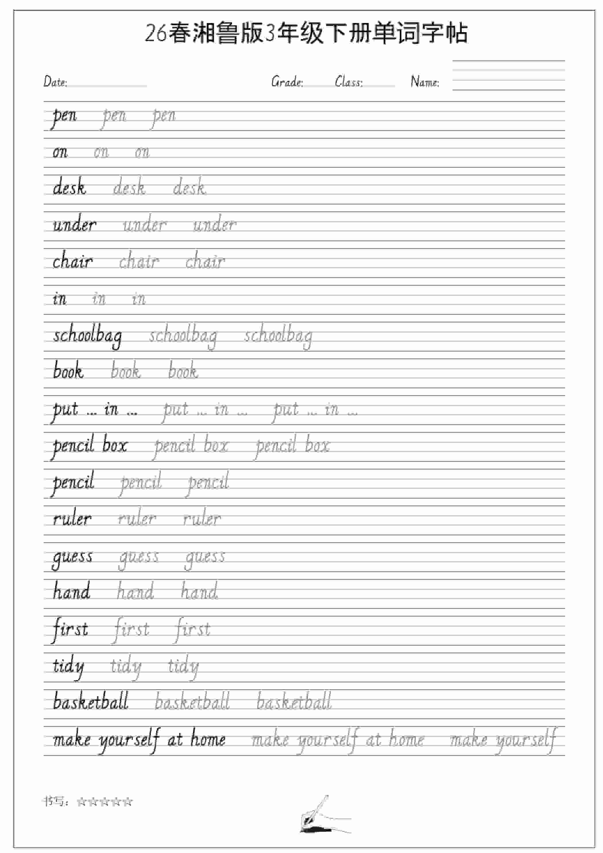 三年级下英语26春单词字帖《湘鲁版》-独家科技资源网