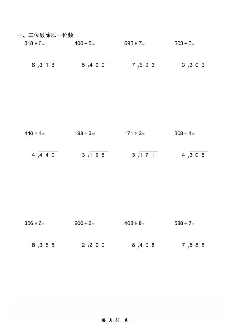 三年级下数学除数是一位数的的除法竖式专项训练-独家科技资源网